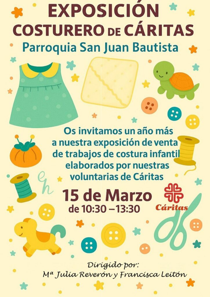 Hemos celebrado este domingo 15 de marzo la exposición del “Costurero”. Se hace todo desde el principio empezando por la elección y compra de las telas, corte de patrones, costura y planchado, unas quince personas voluntarias de Cáritas trabajan incansablemente desde hace 23 años, 2 días a la semana, confeccionando ropa infantil a mano. Una vez al año ofrecen todo lo creado para que el que quiera contribuya con su aportación a los fondos de Cáritas. Agradecemos desde la parroquia este gran esfuerzo que realizan para que podamos seguir ayudando a todo el que lo necesita.